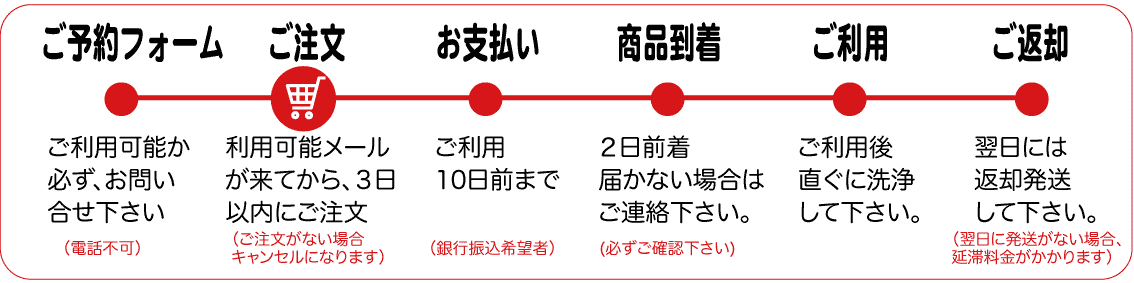 銀行振込希望の方の場合はご利用の10日前までにお振込ください。ご入金を確認してからの発送となります。
